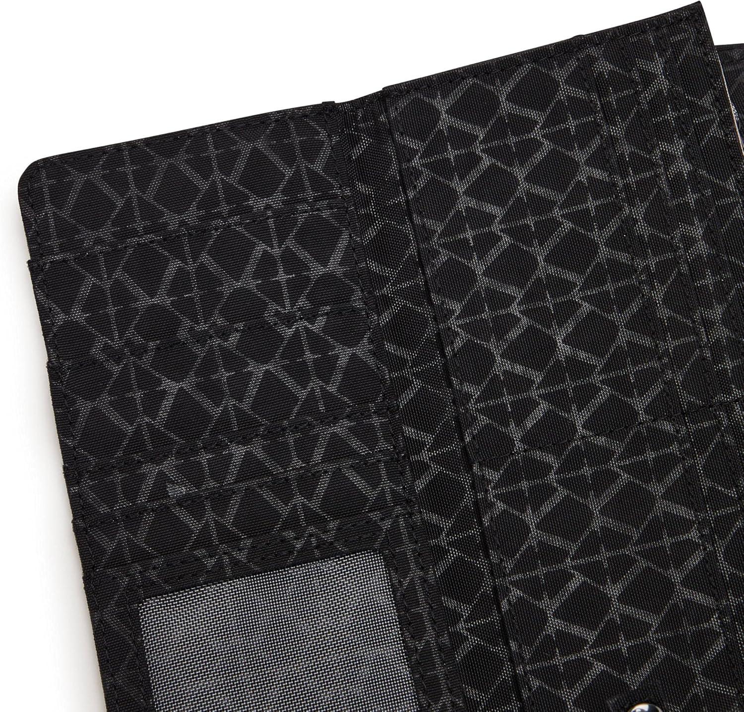 This petite wallet has innovative pockets and an easy zip closure for a simple yet classic design! RFID technology prevents hackers from “skimming data wirelessly by creating a virtual shield to protect your chipped cards.