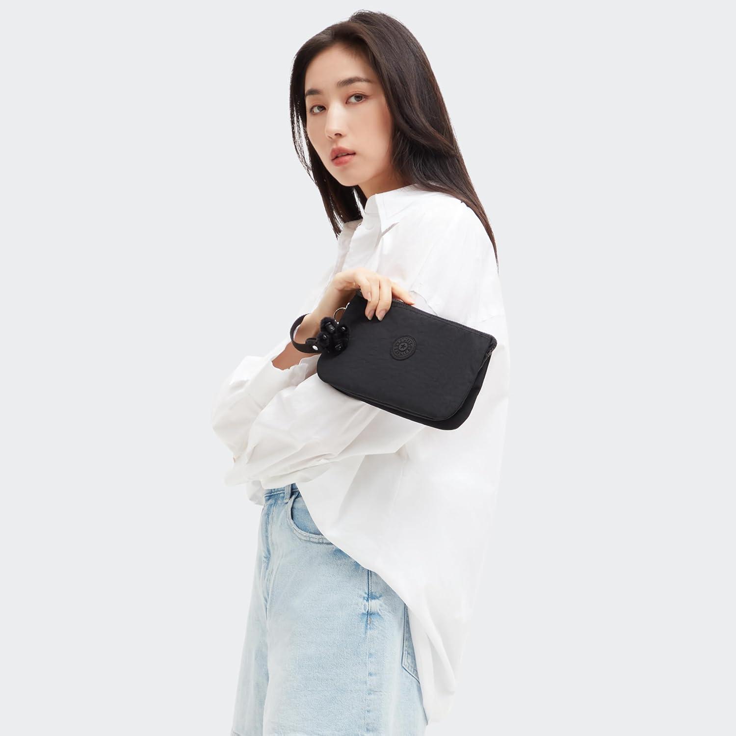 Kipling Women's Creativity Extra Large Wristlet, Versatile Cosmetics Kit, Lightweight Travel Organizer(Black Noir)