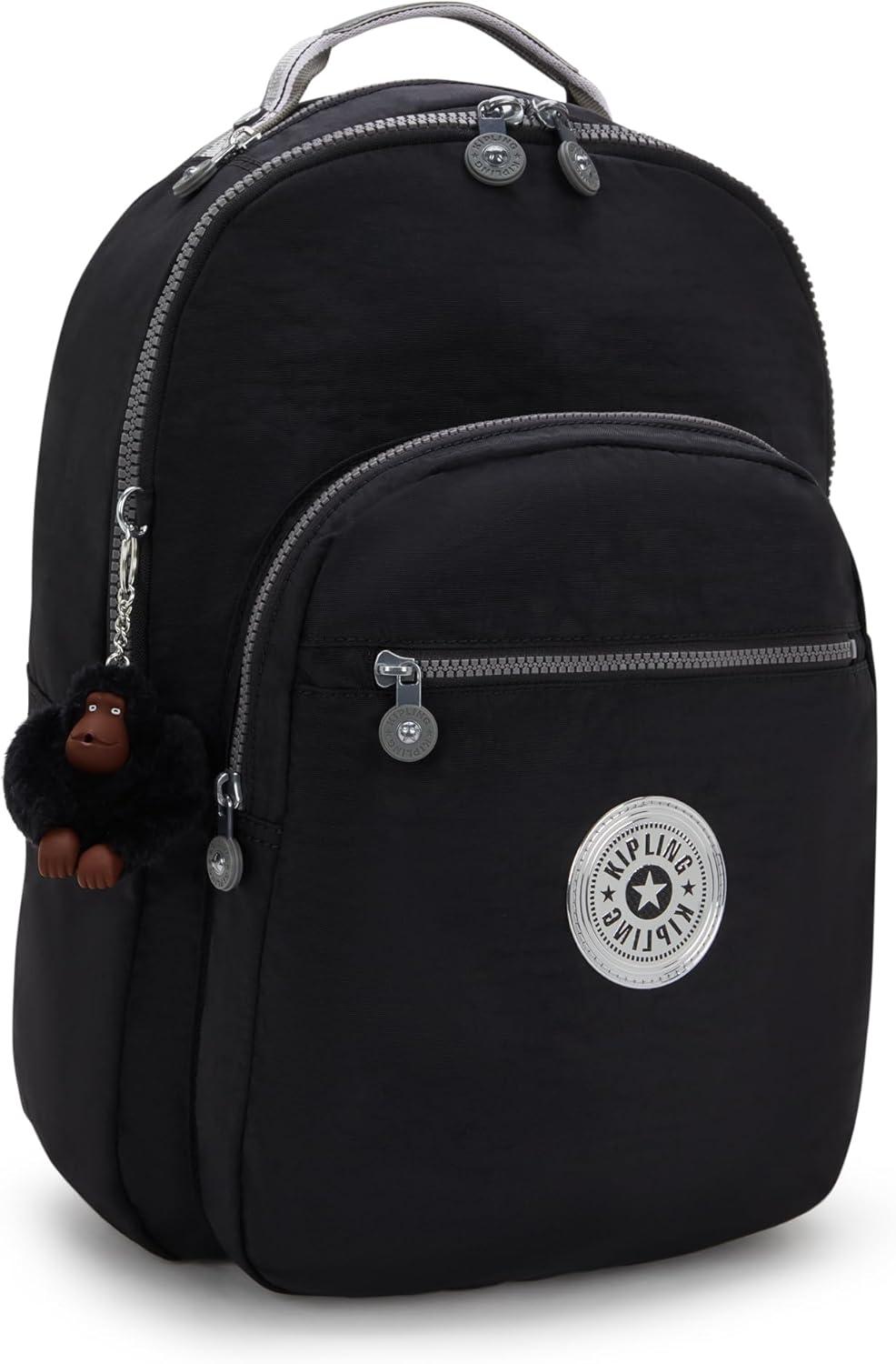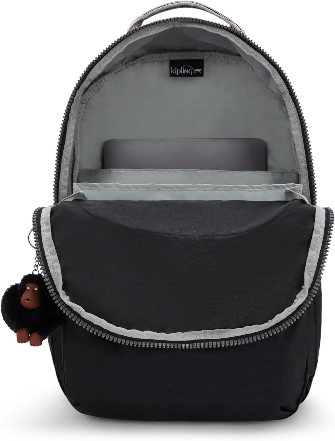 Kipling Women’s Seoul 15″ Laptop Backpack, Durable, Roomy with Padded Shoulder Straps, Built-In Protective Sleeve(Black Bm P Cu Web)