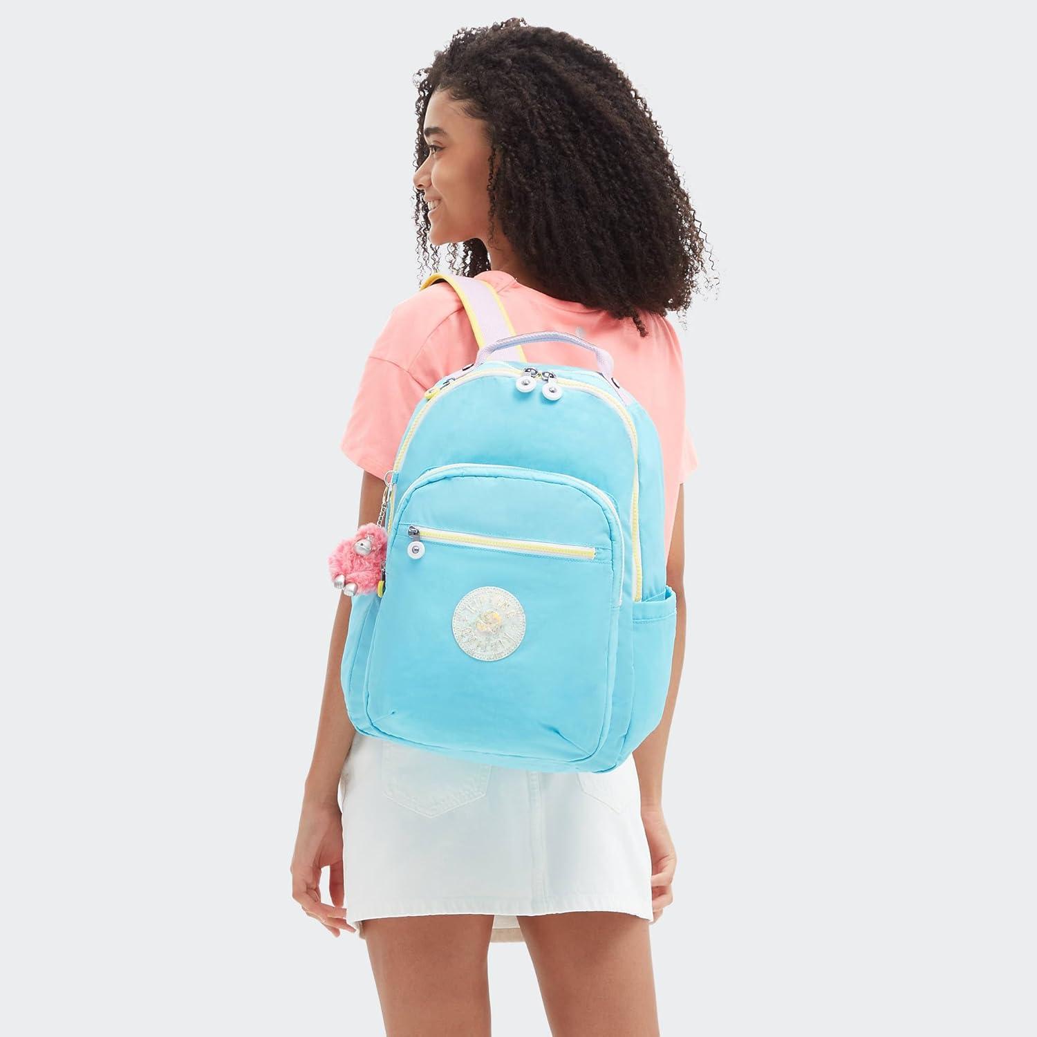 Kipling Women’s Seoul 15″ Laptop Backpack, Durable, Roomy with Padded Shoulder Straps, Built-In Protective Sleeve(Blue Sky)