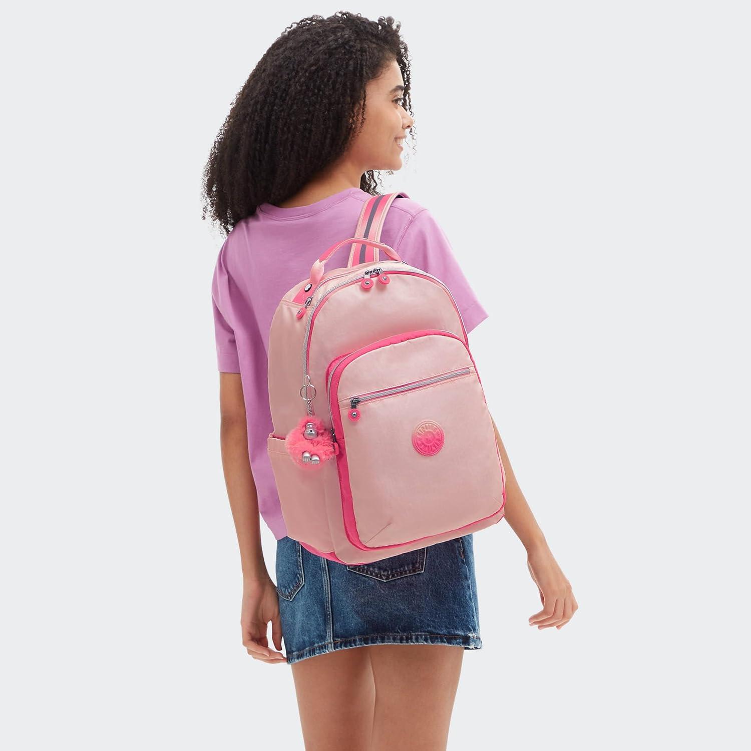 Kipling Women’s Seoul 15″ Laptop Backpack, Durable, Roomy with Padded Shoulder Straps, Built-In Protective Sleeve(Blush Met Bl)