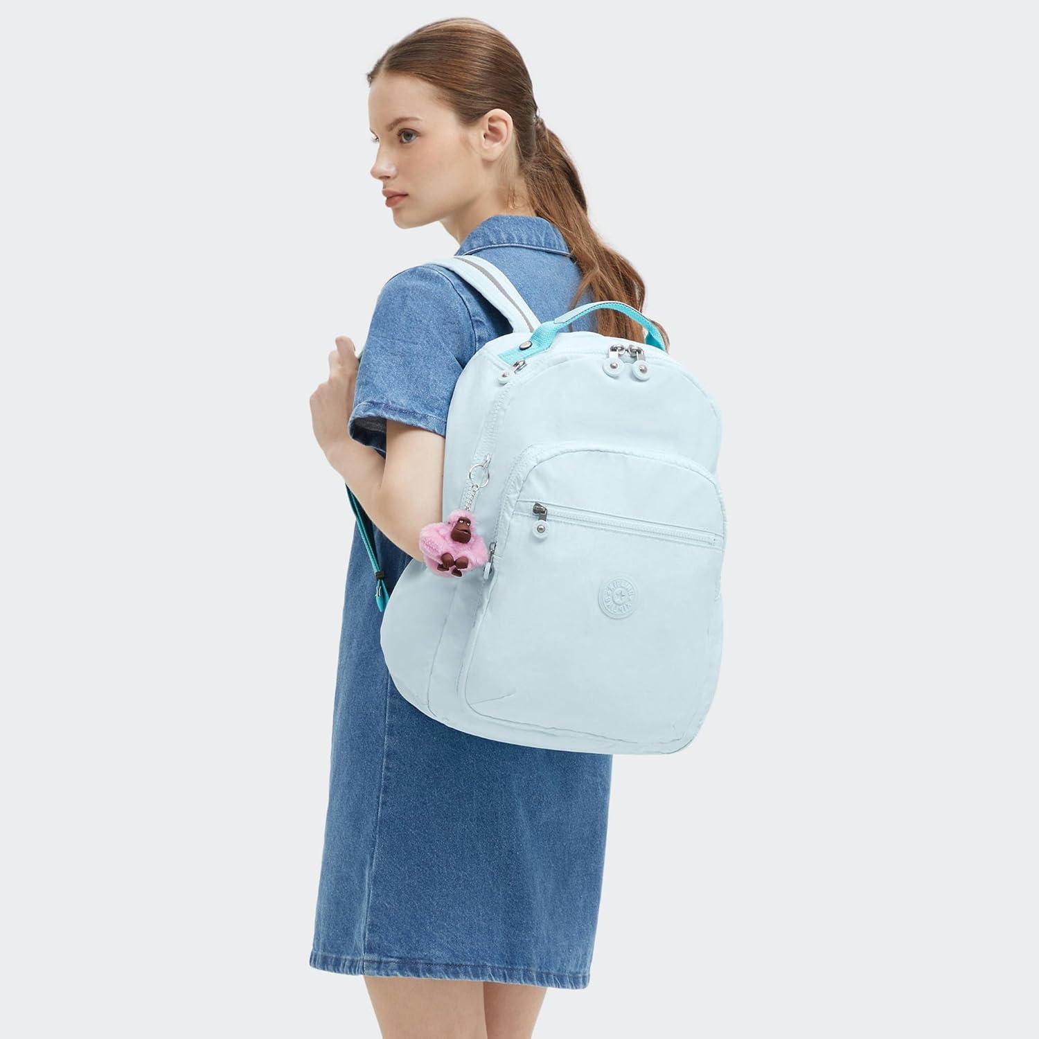 Kipling Women’s Seoul Bts 15″ Laptop Backpack, Durable, Roomy with Padded Shoulder Straps, Built-In Protective Sleeve(Blue Sky Met)